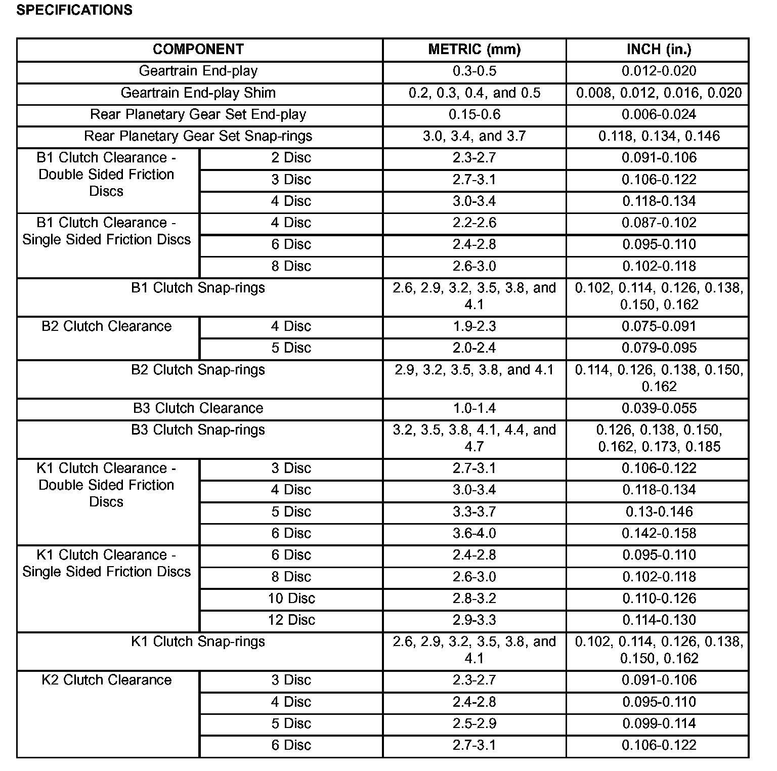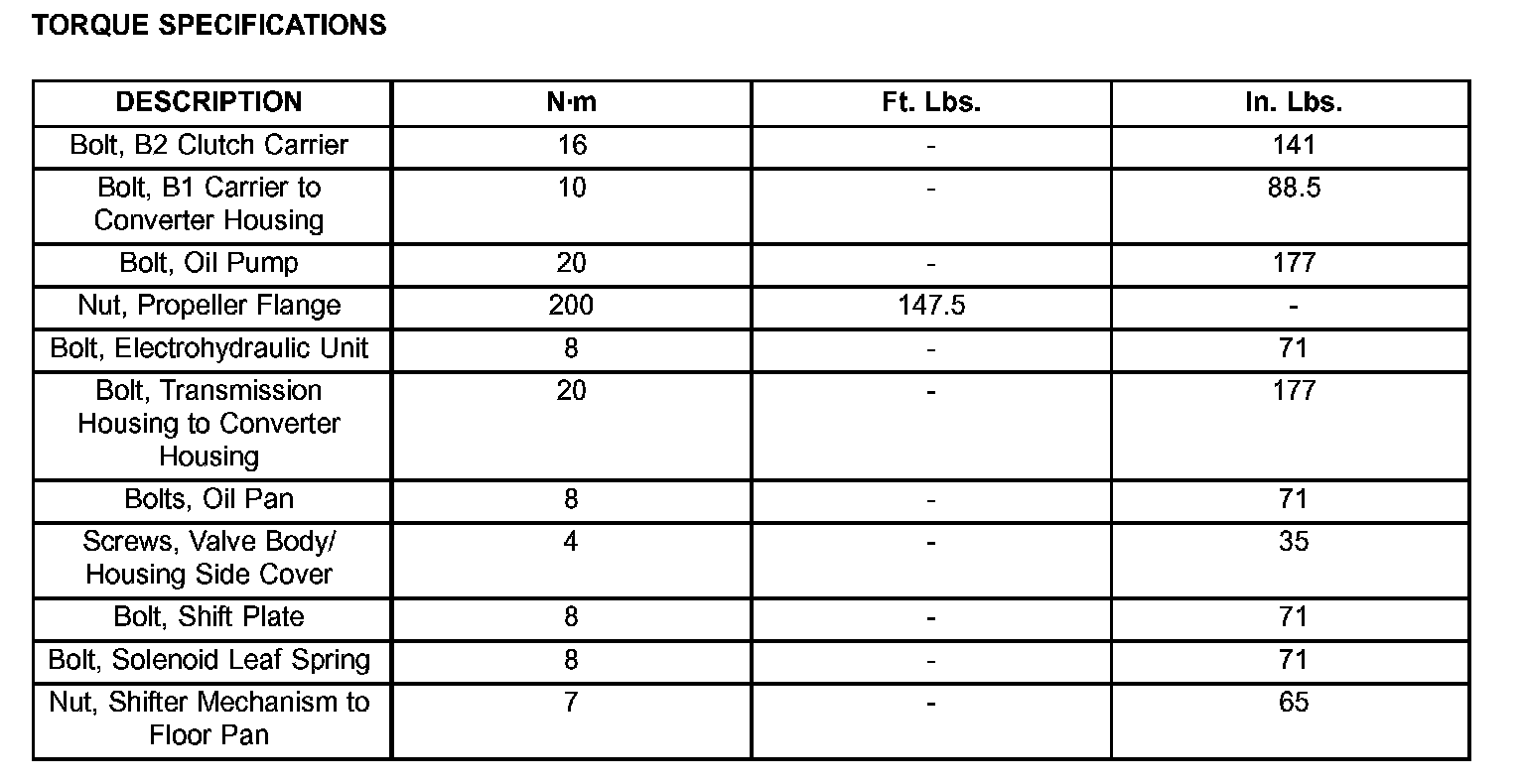 TORQUE SPECIFICATIONS: