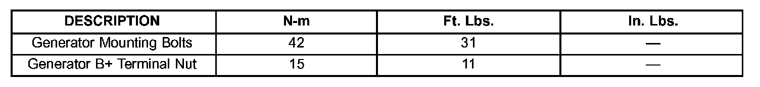 SPECIFICATIONS - TORQUE