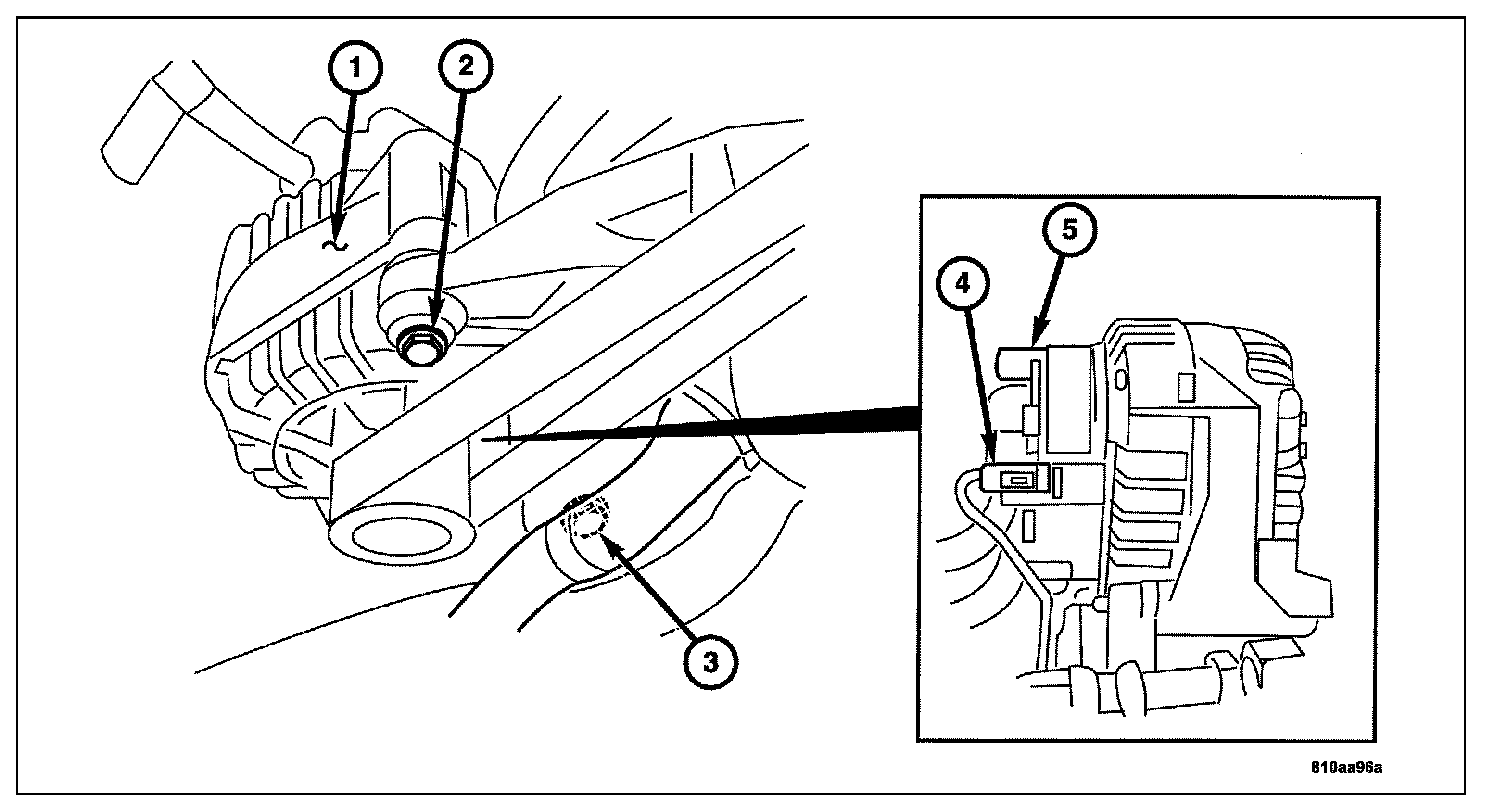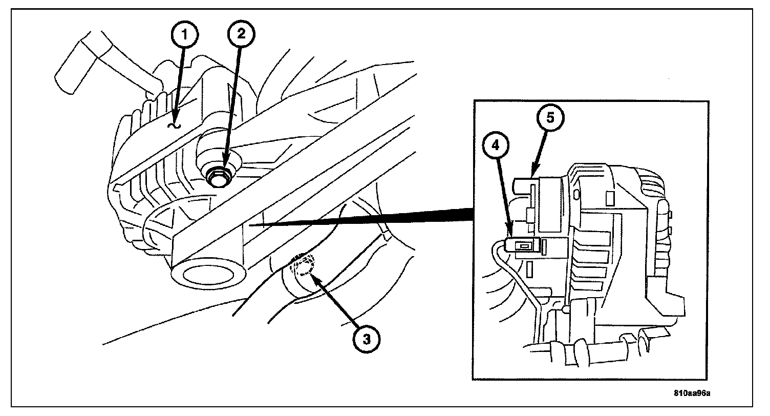 5. Remove the lower generator bolt (3) and reposition the generator to access the generator harness connectors.