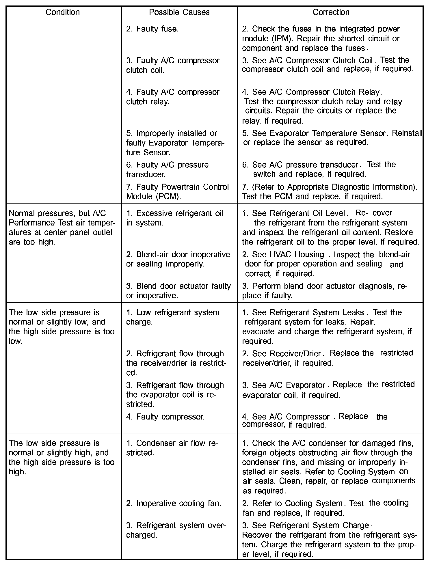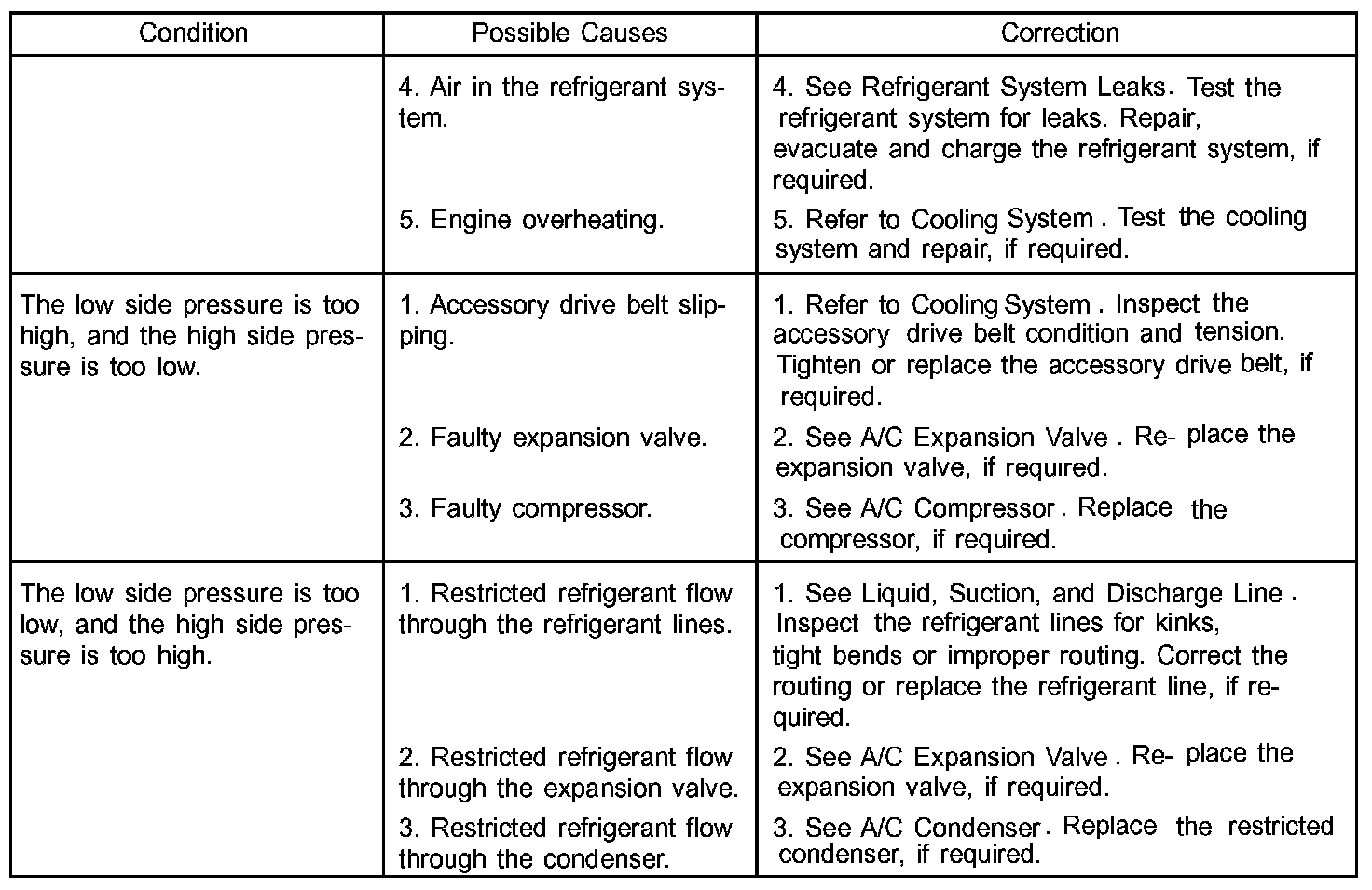 A/C Performance Temperature And Pressure: