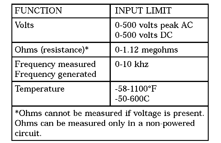 DRBIII SAFETY INFORMATIONWARNING: EXCEEDING THE LIMITS OF THE DRBIII MULTIMETER IS DANGEROUS. IT CAN EXPOSE YOU TO SERIOUS OR POSSIBLY FATAL INJURY. CAREFULLY READ AND UNDERSTAND THE CAUTIONS AND THE SPECIFICATION LIMITS.