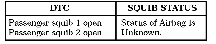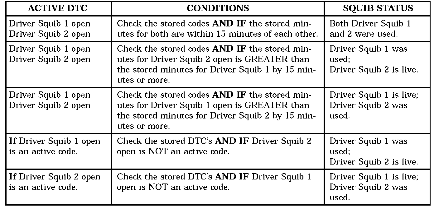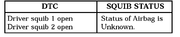 CAUTION: Deployed front airbags may or may not have live pyrotechnic material within the airbag inflator. Do not dispose of driver and passenger airbags unless you are sure of complete deployment. Please refer to the hazardous substance control system for proper disposal. Dispose of deployed airbags in a manner consistent with state, provincial, local, and federal regulations. Use the following table to identify the status of the airbag squib.