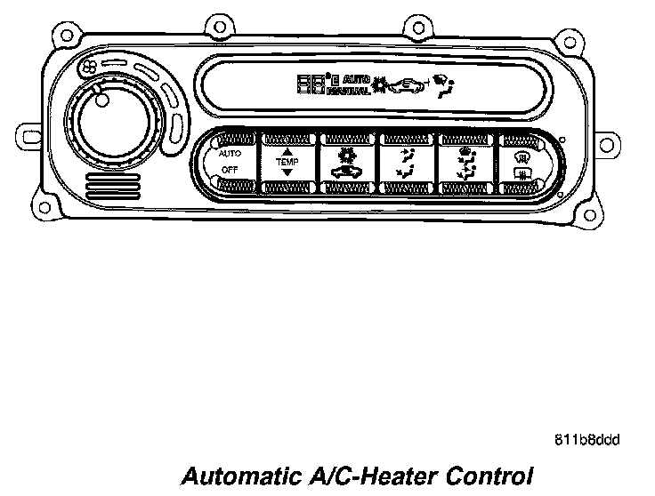 The ATC A/C-heater control contains a push-button mode control, a push-button temperature control and a rotary-type blower motor speed control. The ATC A/C-heater control also has push-button switches to activate the rear window defogger (EBL) system and to turn the A/C on and off.