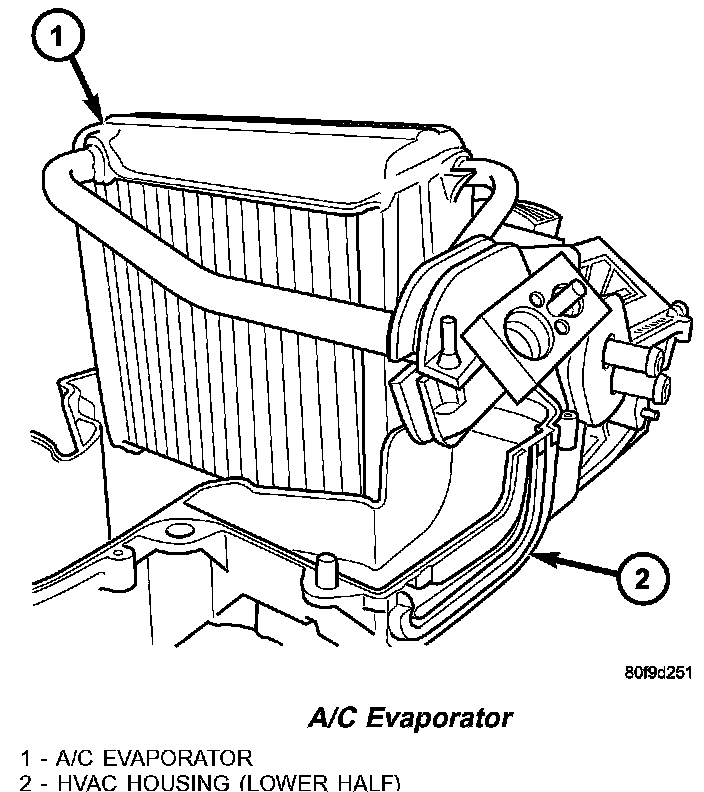 2. Disassemble the HVAC housing as necessary to access the A/C evaporator.
