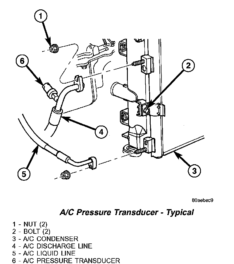 NOTE: It is not necessary to discharge the refrigerant system to replace the A/C pressure transducer.