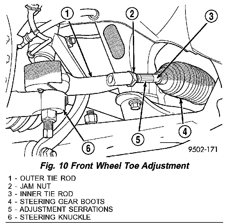 (2) Loosen front inner to outer tie rod end jam nuts (Fig. 10).