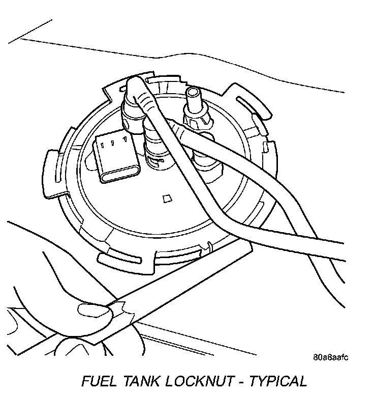 WARNING: THE FUEL RESERVOIR OF THE FUEL PUMP MODULE DOES NOT EMPTY OUT WHEN THE TANK IS DRAINED. THE FUEL IN THE RESERVOIR WILL SPILL OUT WHEN THE MODULE IS REMOVED.