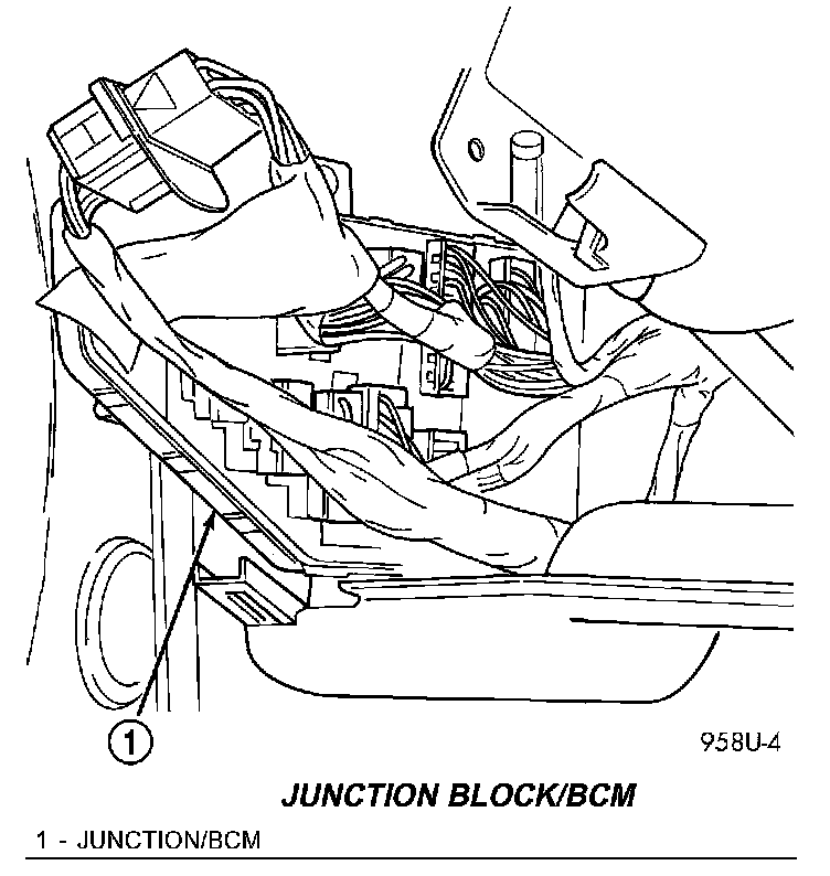 The Junction Block (JB) and Body Control Module (BCM) are attached to each other. After removal they can be separated. Junction Block and Body Control Module assemblies are located on the driver's side of the vehicle.