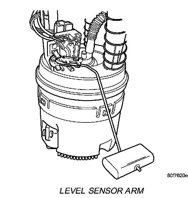 1. Depress retaining tab and remove the fuel pump/level sensor connector from the bottom of the fuel pump module electrical connector.