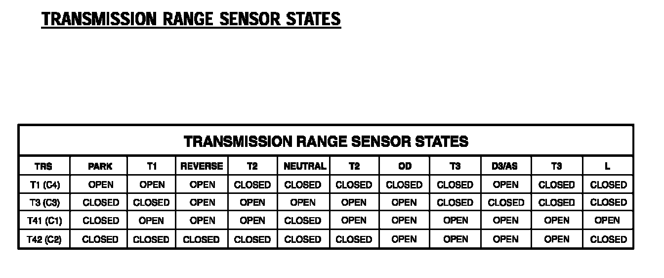 TRANSMISSION RANGE SENSOR STATES: