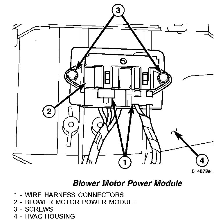 - THE HEAT SINK FOR THE BLOWER MOTOR POWER MODULE MAY GET VERY HOT DURING NORMAL OPERATION. IF THE BLOWER MOTOR WAS TURNED ON PRIOR TO SERVICING THE BLOWER MOTOR POWER MODULE, WAIT FIVE MINUTES TO ALLOW THE HEAT SINK TO COOL BEFORE PERFORMING DIAGNOSIS OR SERVICE. FAILURE TO TAKE THIS PRECAUTION CAN RESULT IN POSSIBLE PERSONAL INJURY.