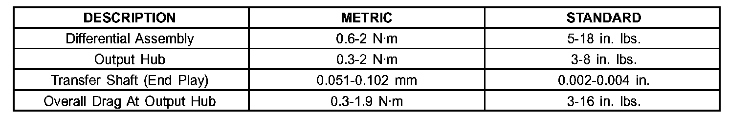 40TE AUTOMATIC TRANSAXLE BEARING SETTINGS (END PLAY & TURNING TORQUE):