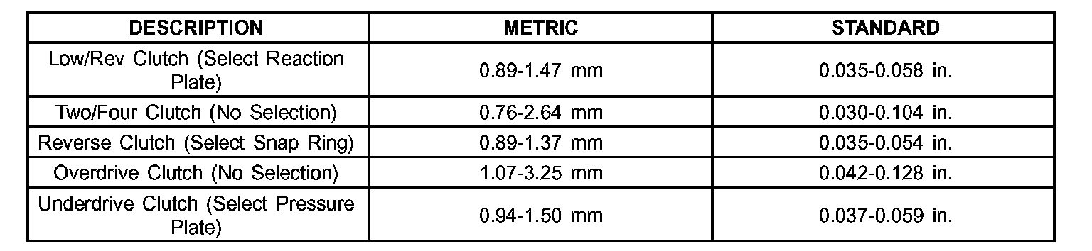 40TE AUTOMATIC TRANSAXLE CLUTCH CLEARANCES: