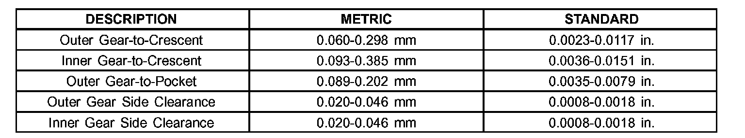 40TE AUTOMATIC TRANSAXLE OIL PUMP CLEARANCES: