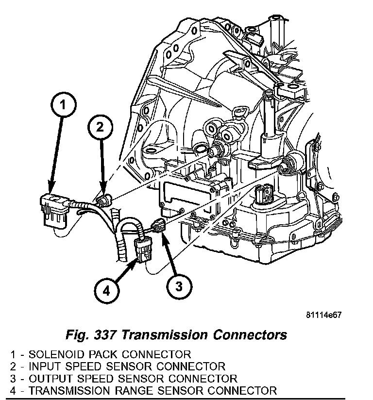 (1) Disconnect battery negative cable. (2) Disconnect input speed sensor connector (2) (Fig. 337).