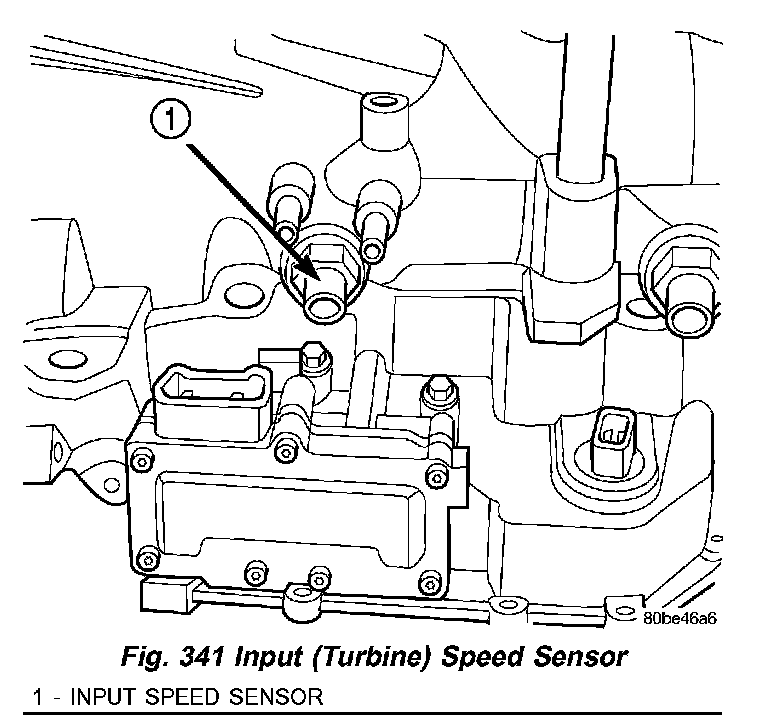 (2) Install and tighten input speed sensor (1) (Fig. 341) to 27 Nm (20 ft. lbs.).