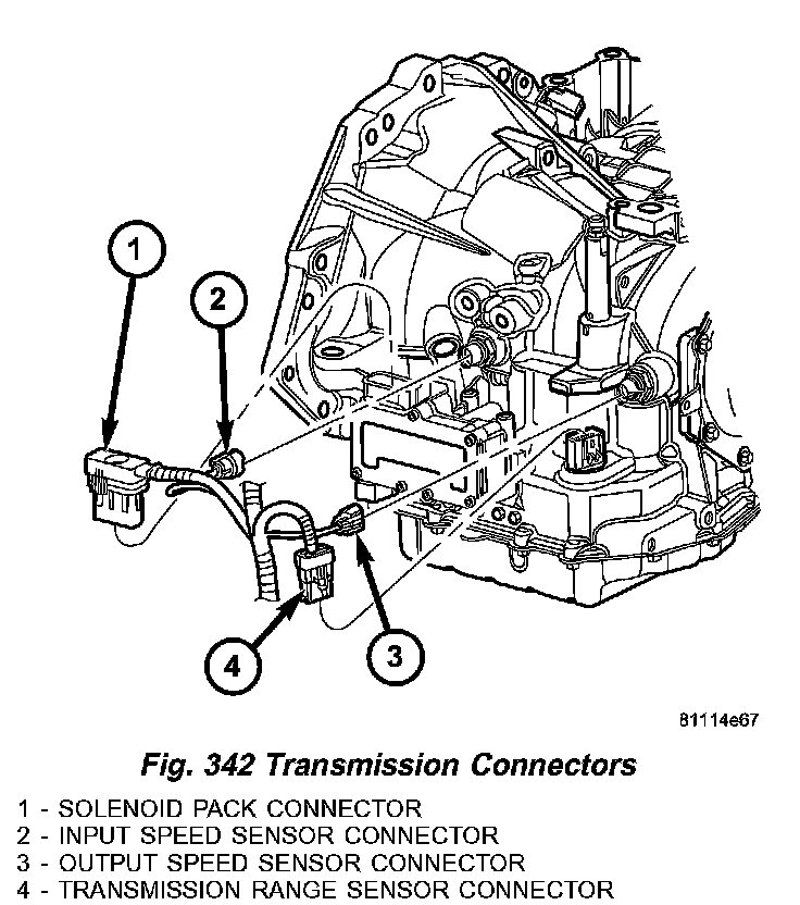 (3) Connect speed sensor connector (2) (Fig. 342).