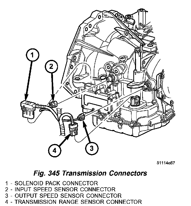 (1) Disconnect battery negative cable. (2) Disconnect input speed sensor connector (2) (Fig. 345).