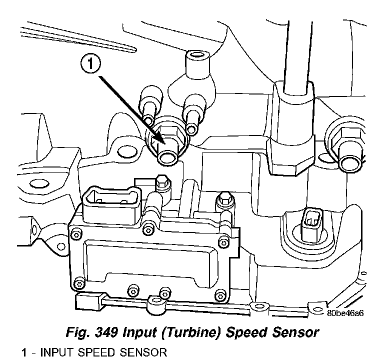 (2) Install and tighten the input speed sensor (1) (Fig. 349) to 27 Nm (20 ft. lbs.).