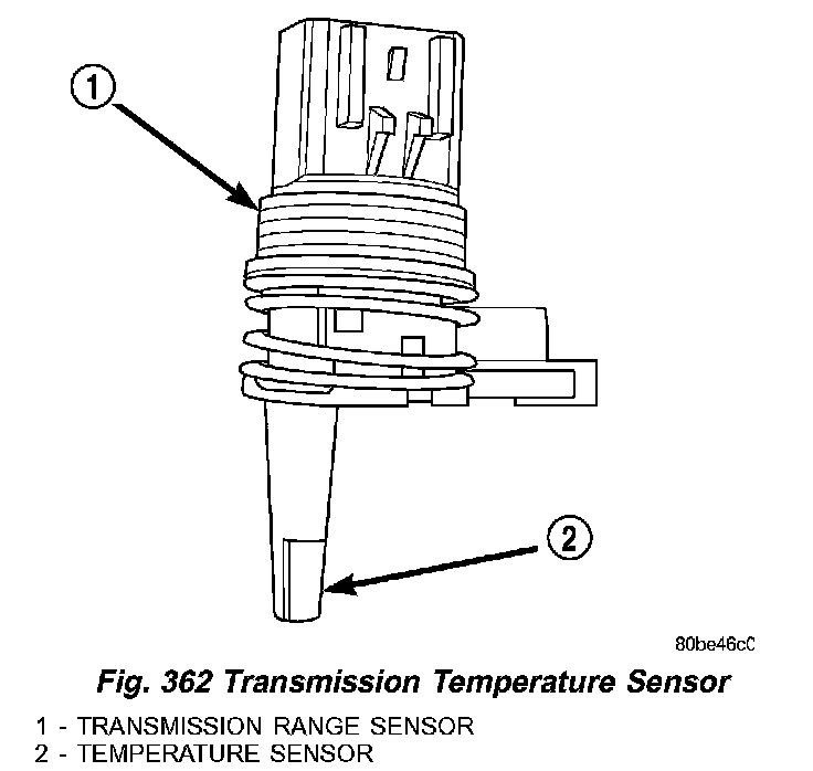 The TRS (1) (Fig. 362) also has an integrated temperature sensor (thermistor) (2) that communicates transaxle temperature to the TCM and PCM.
