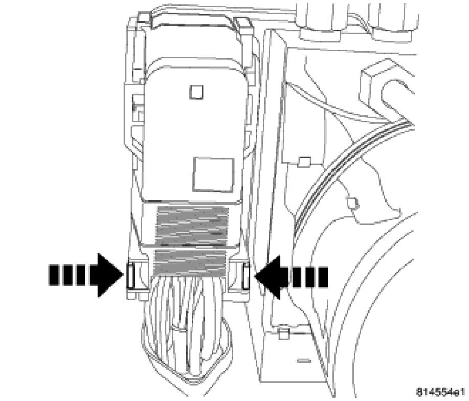 NOTE: Use this figure in the following step to release the ABM harness connector cover. It shows the location of the release tabs.