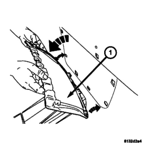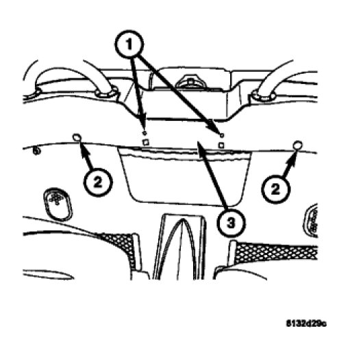 3. Reposition the rear cargo carpet to the correct position and then install the front sports bar trim panel (3) by installing the plastic retainers (2).