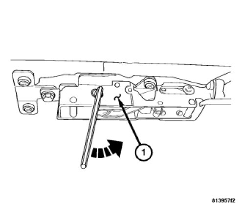4. Open the decklid and unlock the rear bow by inserting an allen wrench into the rear bow latch (1) and turning counterclockwise.