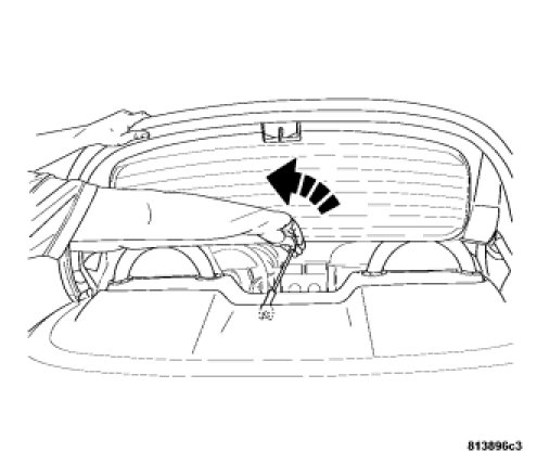 3. Push up on the convertible top release handle to create a gap between the header and top of approximately 8 inches (200 mm). Once the top is free, rotate the release handle back to its stored position.