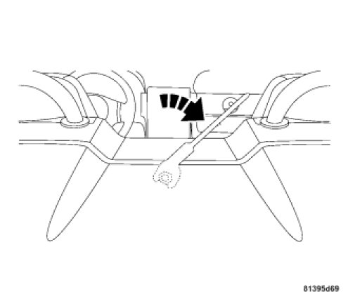 11. Insert the multifunction tool (supplied with vehicle) into gap in front of the tonneau cover and rotate clockwise until the tonneau cover is locked.