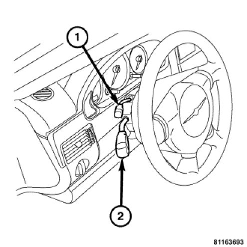 The Speed Control System is fully electronically controlled by the Powertrain Control Module (PCM). Control of the Speed Control System is accomplished by a Speed Control Switch (1) which is located just above the Multifunction Switch (2). The Speed Control System also uses other components of the vehicle to accomplish its tasks. The five other major components used are as follows; The PCM, Accelerator Pedal Position Sensor, Kickdown Switch (Automatic Transmission), Throttle Body and the Clutch Pedal Position Switch (Transmission). The Speed Control System is designed to operate at speeds above 25 MPH (40 km/h).