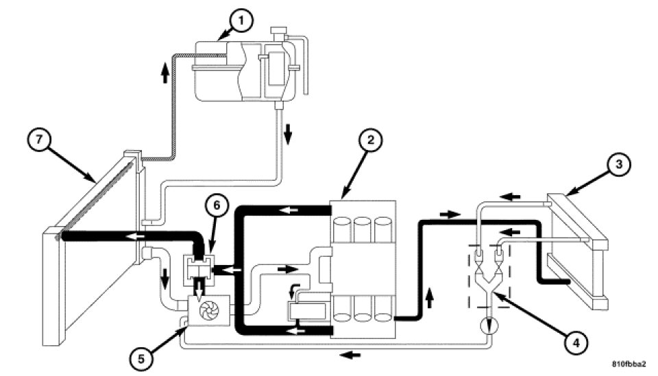 - Plugged heater hoses or supply and return ports at the cooling system connections.