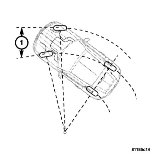 Toe-out on turns is the relative positioning (1) of the front wheels while steering through a turn. This compensates for each front wheel's turning radius. As the vehicle encounters a turn, the outboard wheel must travel in a larger radius circle than the inboard wheel. The steering system is designed to make each wheel follow its particular radius circle. To accomplish this, the front wheels must progressively toe outward as the steering is turned from center. This eliminates tire scrubbing and undue tire wear when steering a vehicle through a turn.