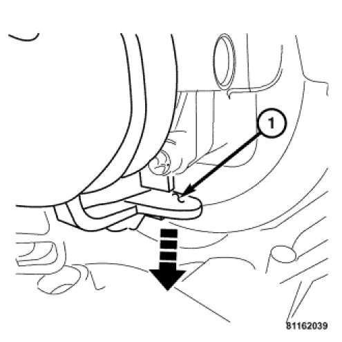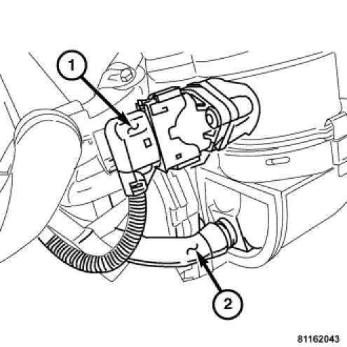 2. Lock the lower locking tab (1) to the intake manifold. Lock the upper locking tab to the intake manifold.