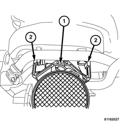 3. Push the MAF so the upper locking ring (1) and tabs (2) are inline with the tabs on the intake, then squeeze the locking ring (1) to lock the MAF onto the intake.