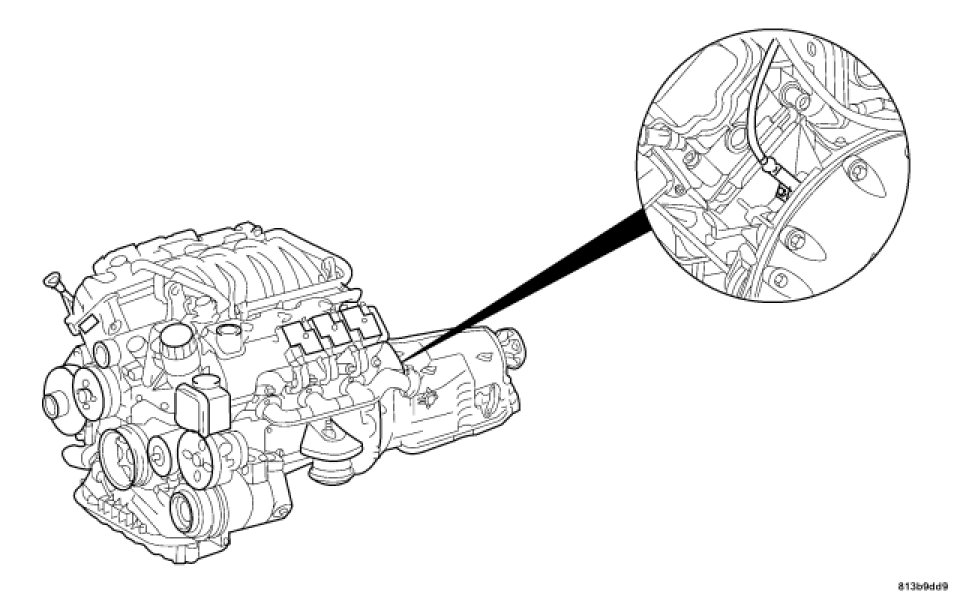 The Crankshaft Position Sensor (1) is located on the left side of the engine just forward of the transmission housing.
