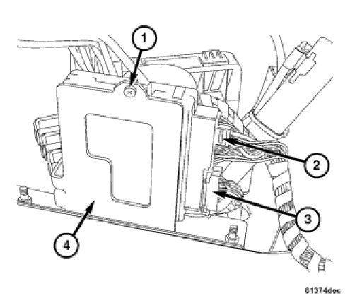 1. Install the power top control module to the hydraulic pump bracket (4).
