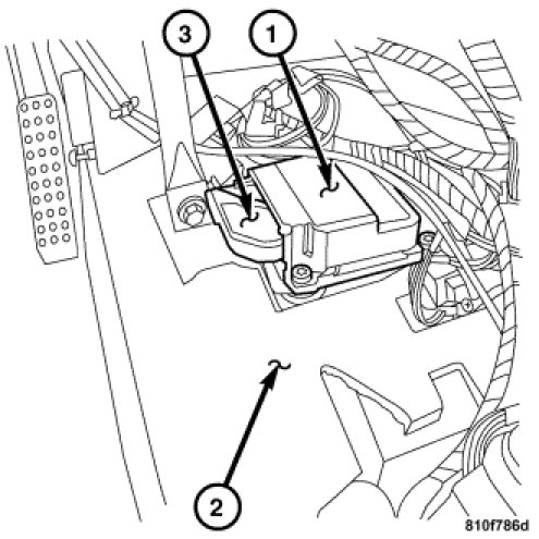 The Occupant Restraint Controller (ORC) is located on the floor beneath the center console. It is secured by four screws to a stamped steel mounting bracket.