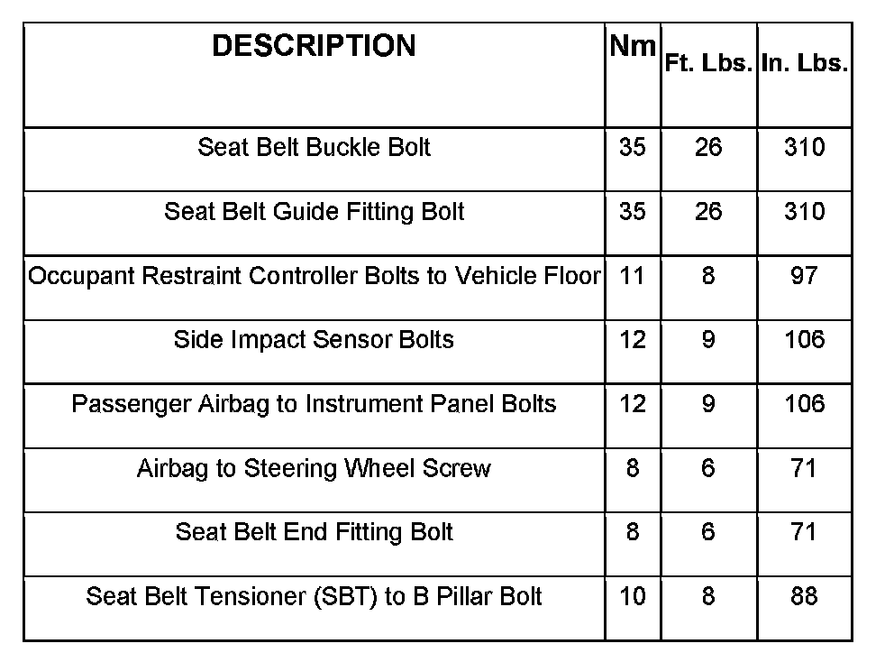 Restraints and Safety Systems: Specifications