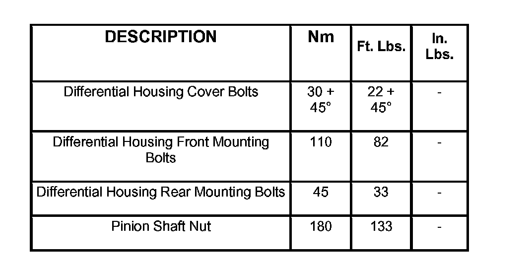 Torque Specifications: