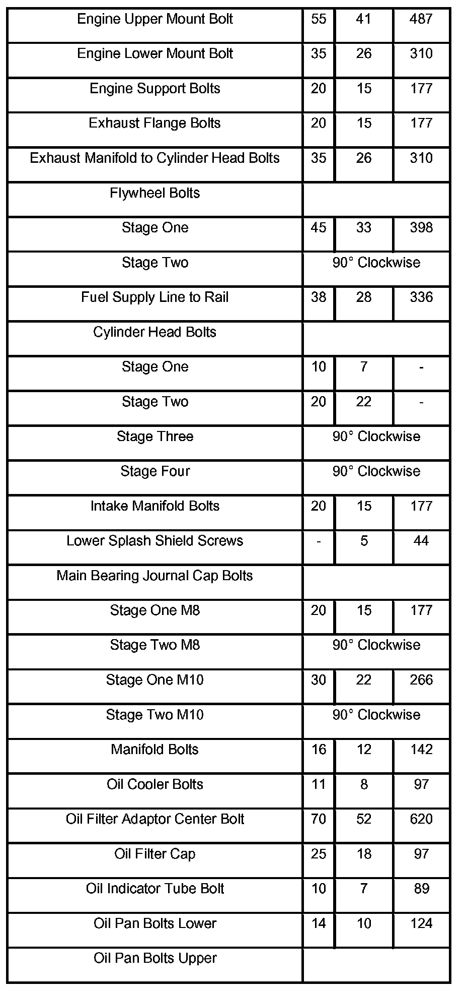 Engine Torque Specifications
