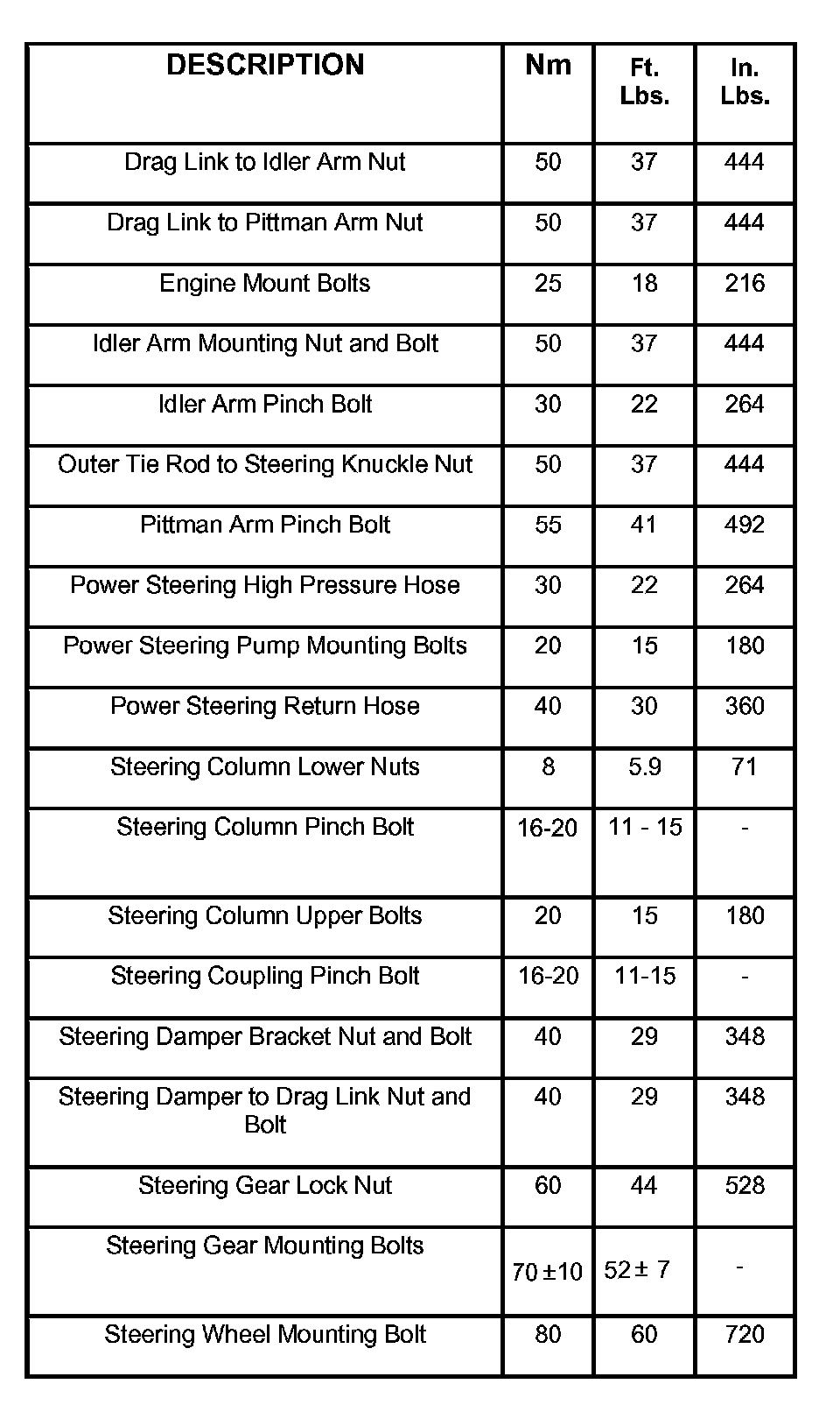 Torque Specifications: