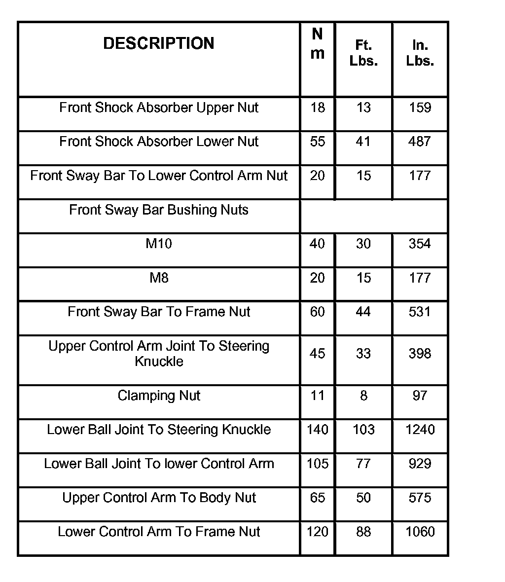Torque Specifications: