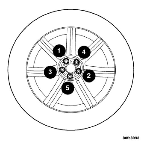 Gradually tighten all wheel bolts in the sequence shown. Tighten the wheel bolts to