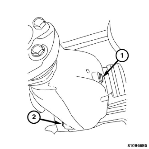 7. Install the differential housing drain plug (2). Tighten the drain plug to 50 Nm (37 ft. lbs.).