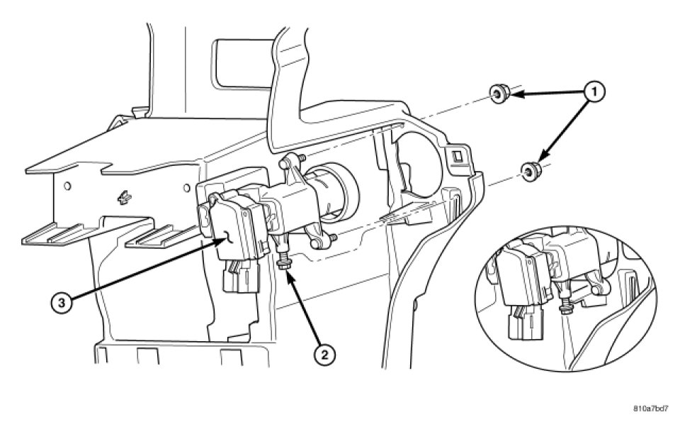3. Install the two mounting nuts (1) to the front of the instrument panel.