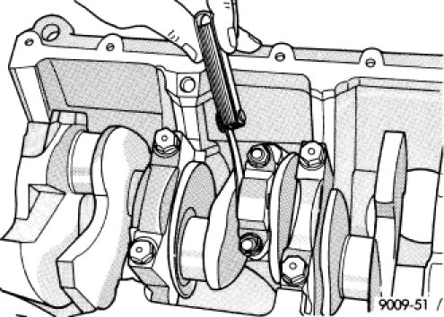 5. Using a feeler gauge, check connecting rod side clearance. Refer to Engine Specifications.