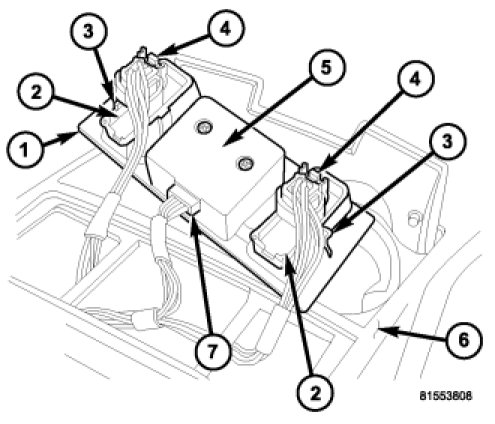 2. Connect the wire harness connectors (4 and 7) to the rear blower motor switch (5) and the rear heated seat switches.