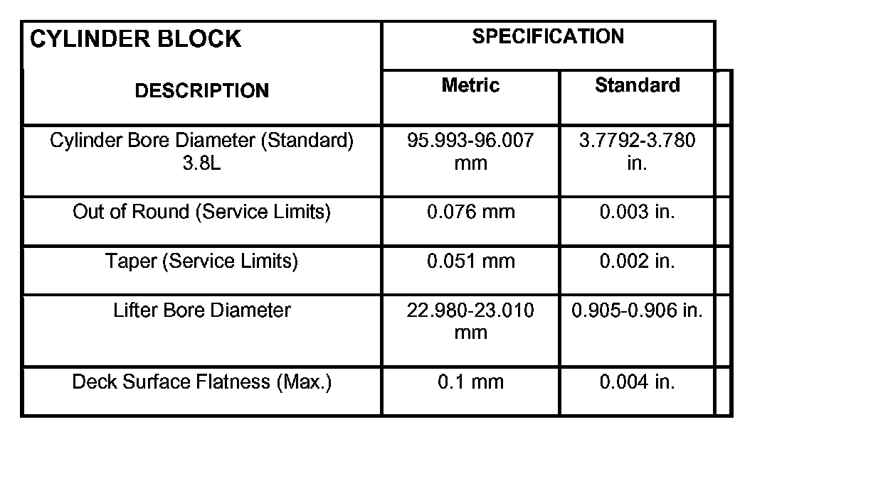 Crankshaft Main Bearing Cap Cross Bolts (3.8L) 61 Nm (45 ft. lbs.)
