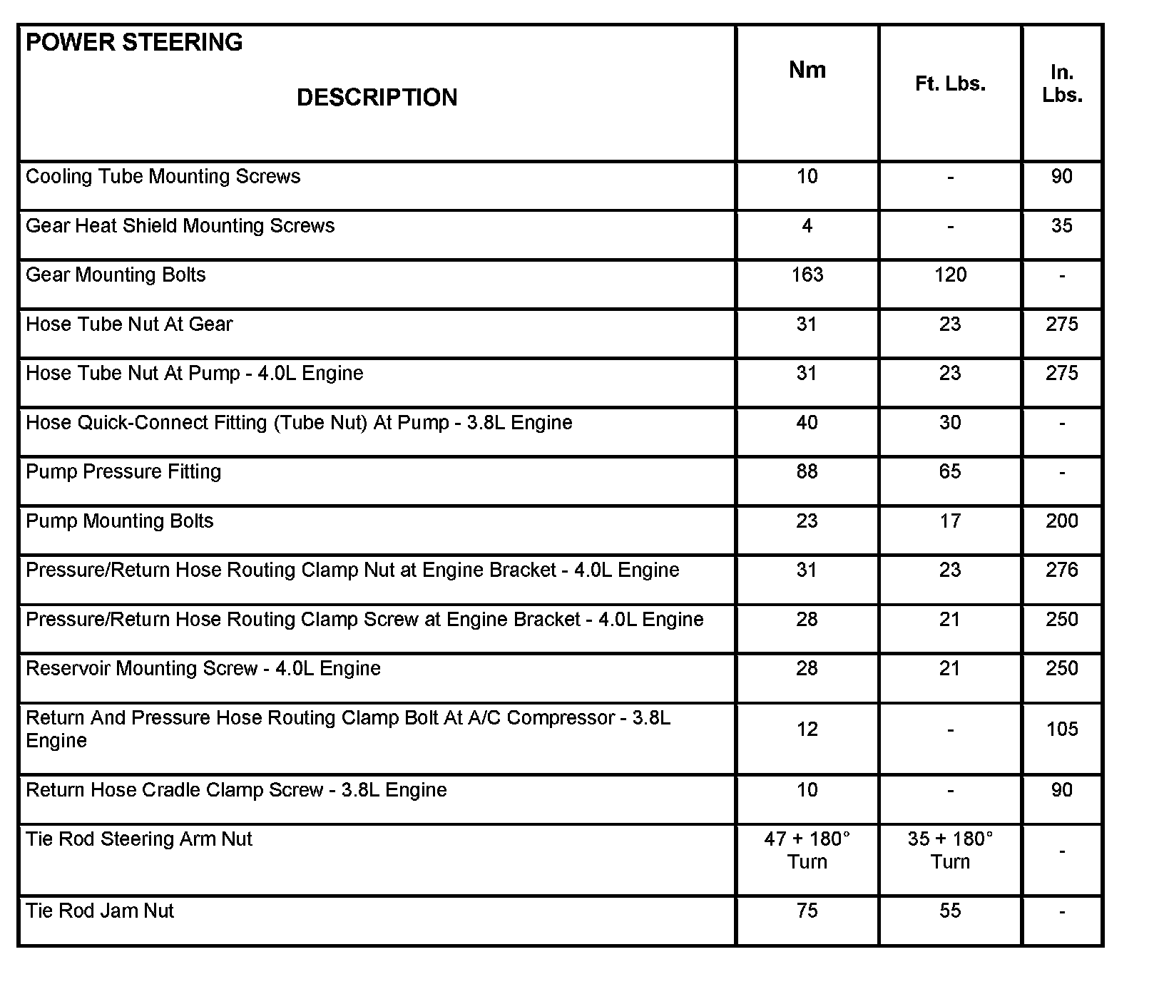 Power Steering Specifications: