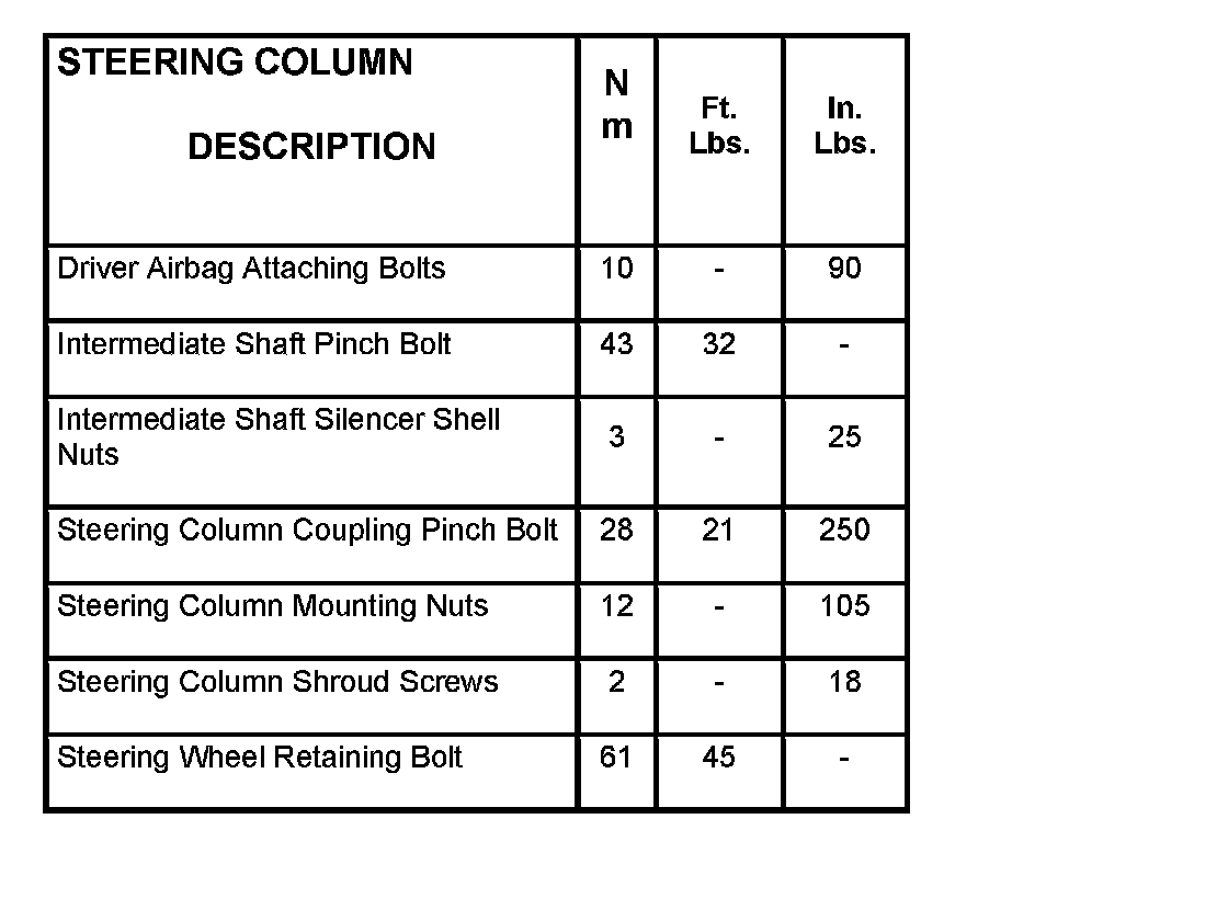 Steering Column Specifications: